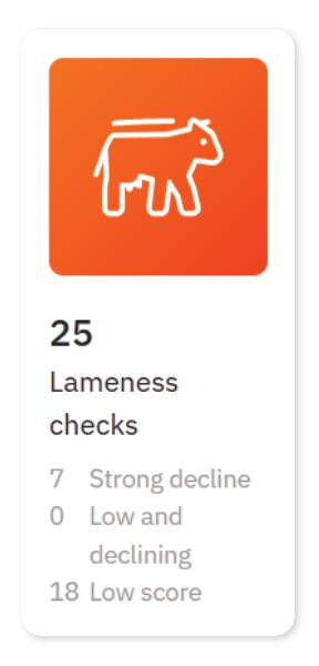 Low score: The locomotion score is below your defined threshold, but remains stable or improves. Low scores are not always caused by hoof issues and may have other causes. You can choose whether or not to show low-score animals in the worklist.