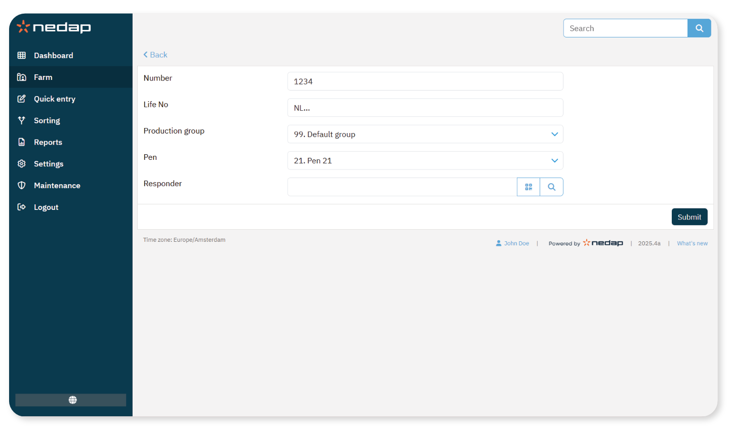 4. Select Submit to save the data.