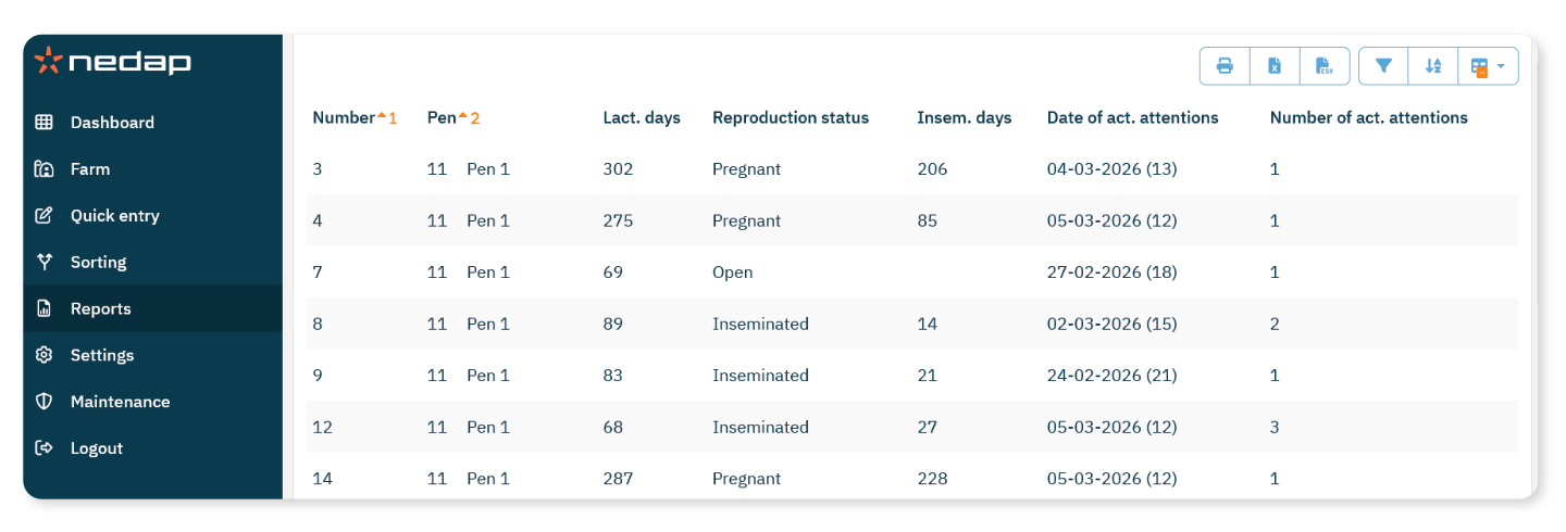 Utilise ce rapport pour passer en revue les alarmes liées aux chaleurs passées et analyser les performances de reproduction.