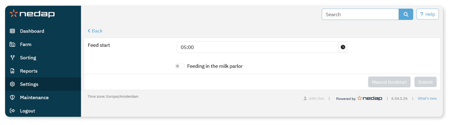 Als je een Farm Management Program (FMP) gebruikt, zorg er dan voor dat de voerstart in Velos overeenkomt met de voertijden in je FMP.