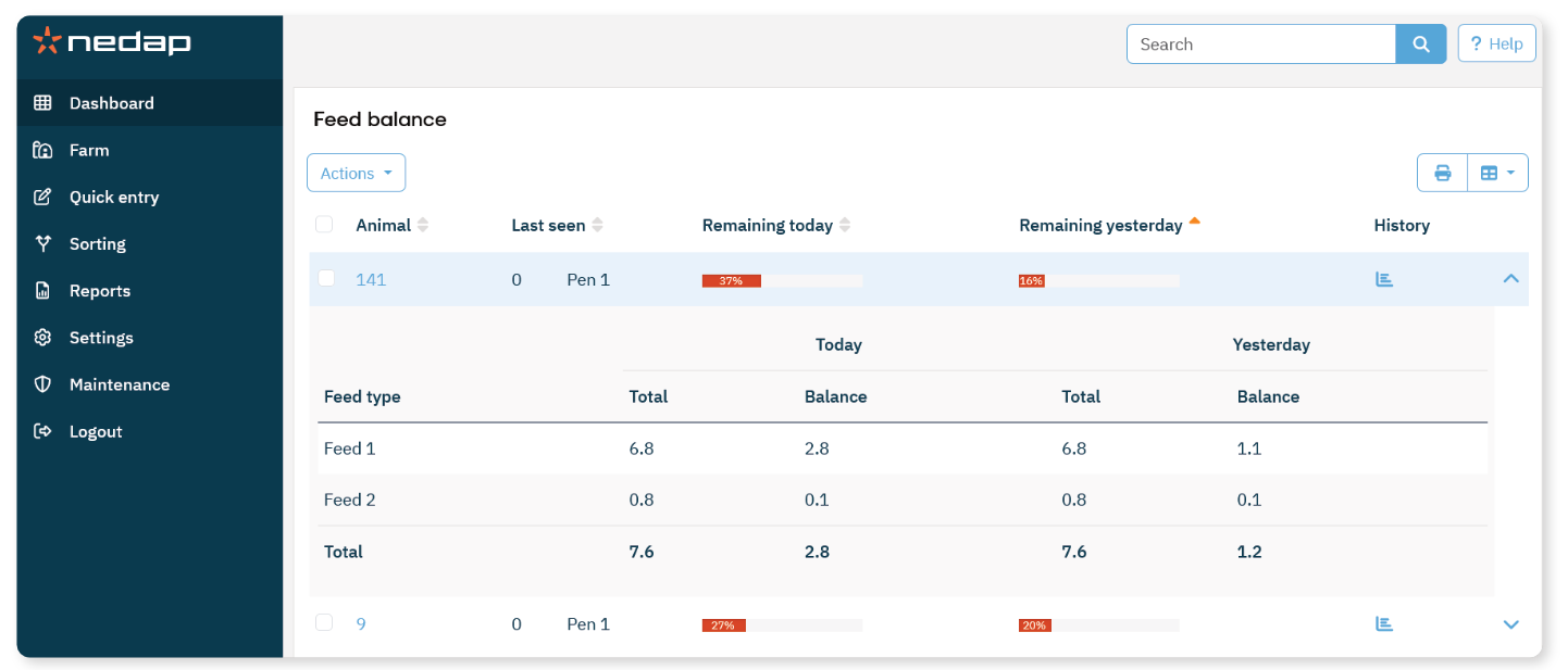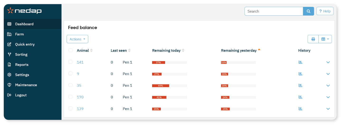 - Gebruik Snel sorteren om direct te sorteren naar individuele dieren.