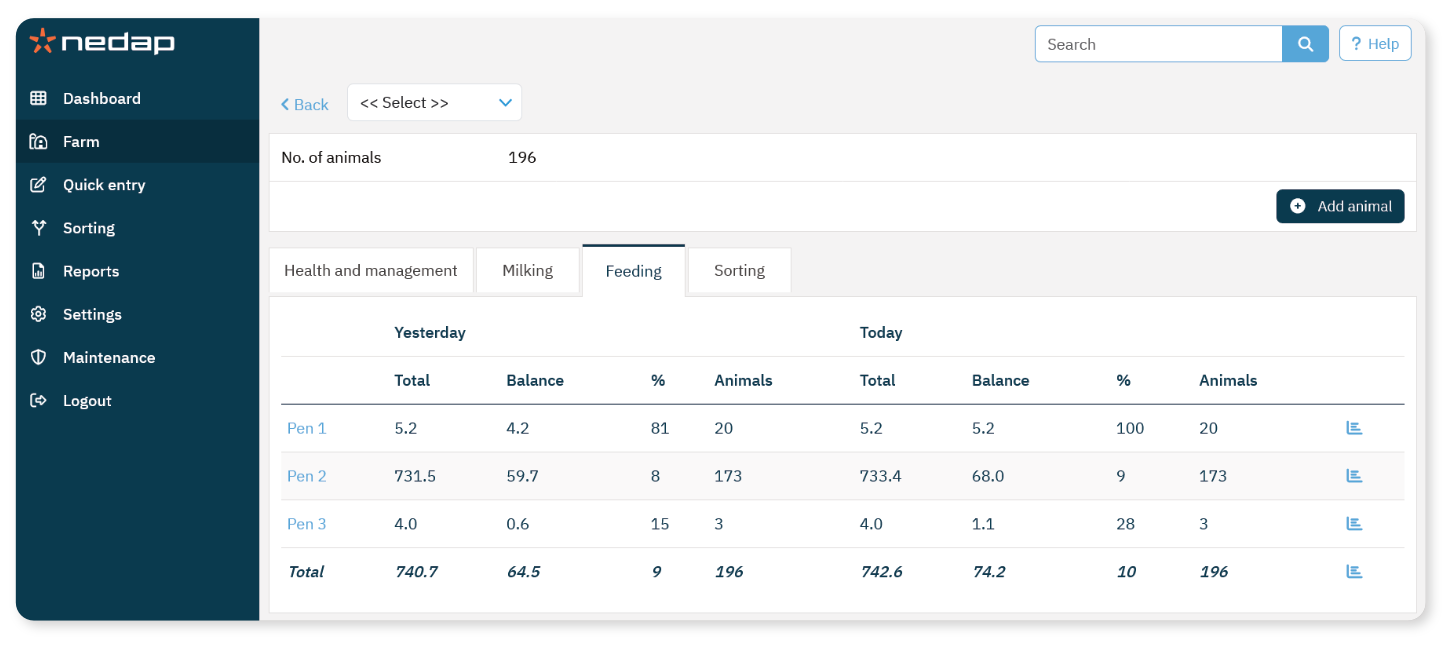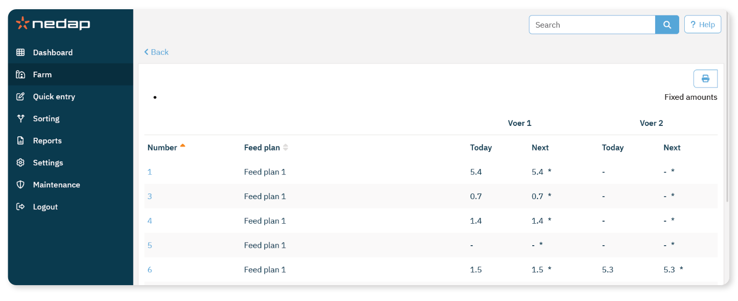 Velos biedt verschillende voeroverzichten om voer hoeveelheden en restvoer bij te houden.