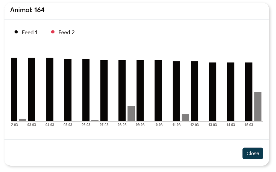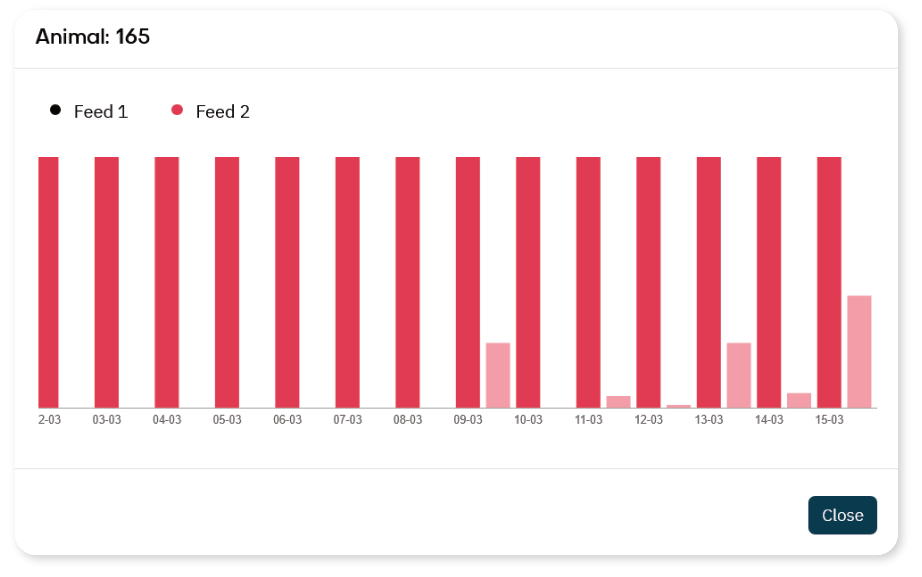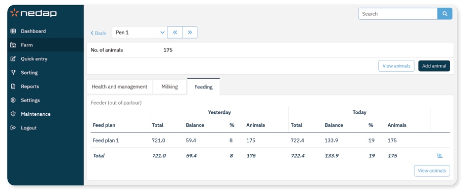 Je kunt voergegevens bekijken op bedrijfs-, groeps- of individueel dierniveau.
