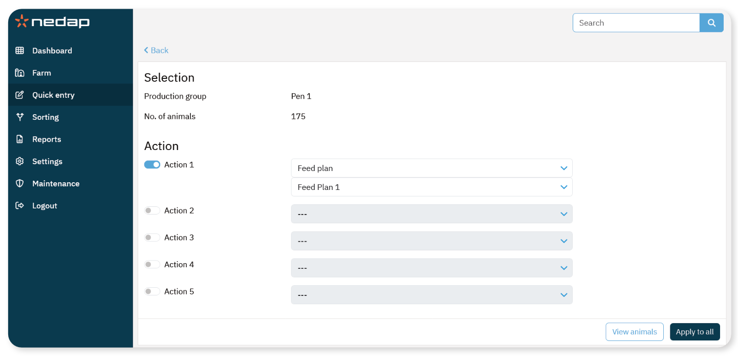 De geselecteerde dieren volgen het nieuwe voerplan vanaf de volgende voerstart.