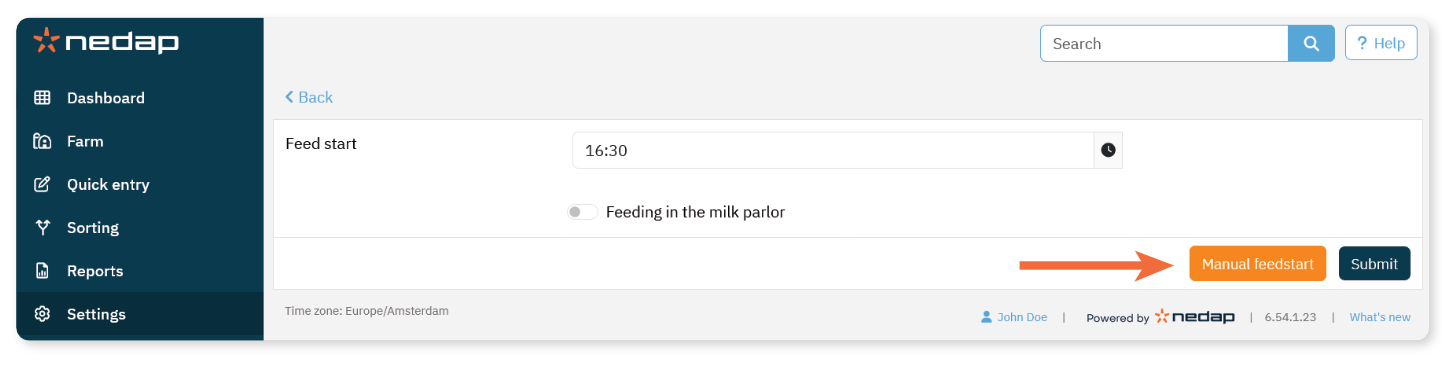 Normaal gesproken wordt de voerstart automatisch uitgevoerd op het ingestelde tijdstip. Je kunt ook een handmatige voerstart uitvoeren als er onmiddellijk wijzigingen nodig zijn.