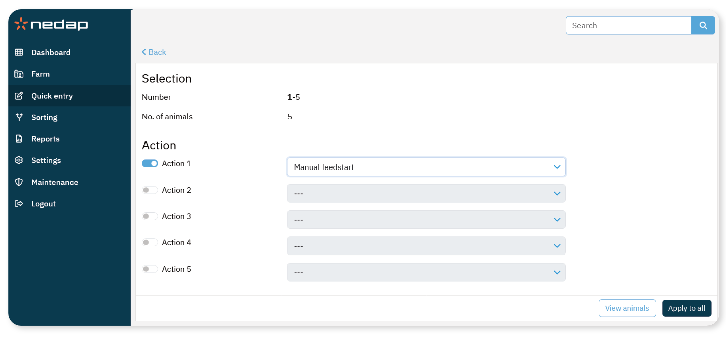 Handmatige voerstart voor geselecteerde dieren of groepen
