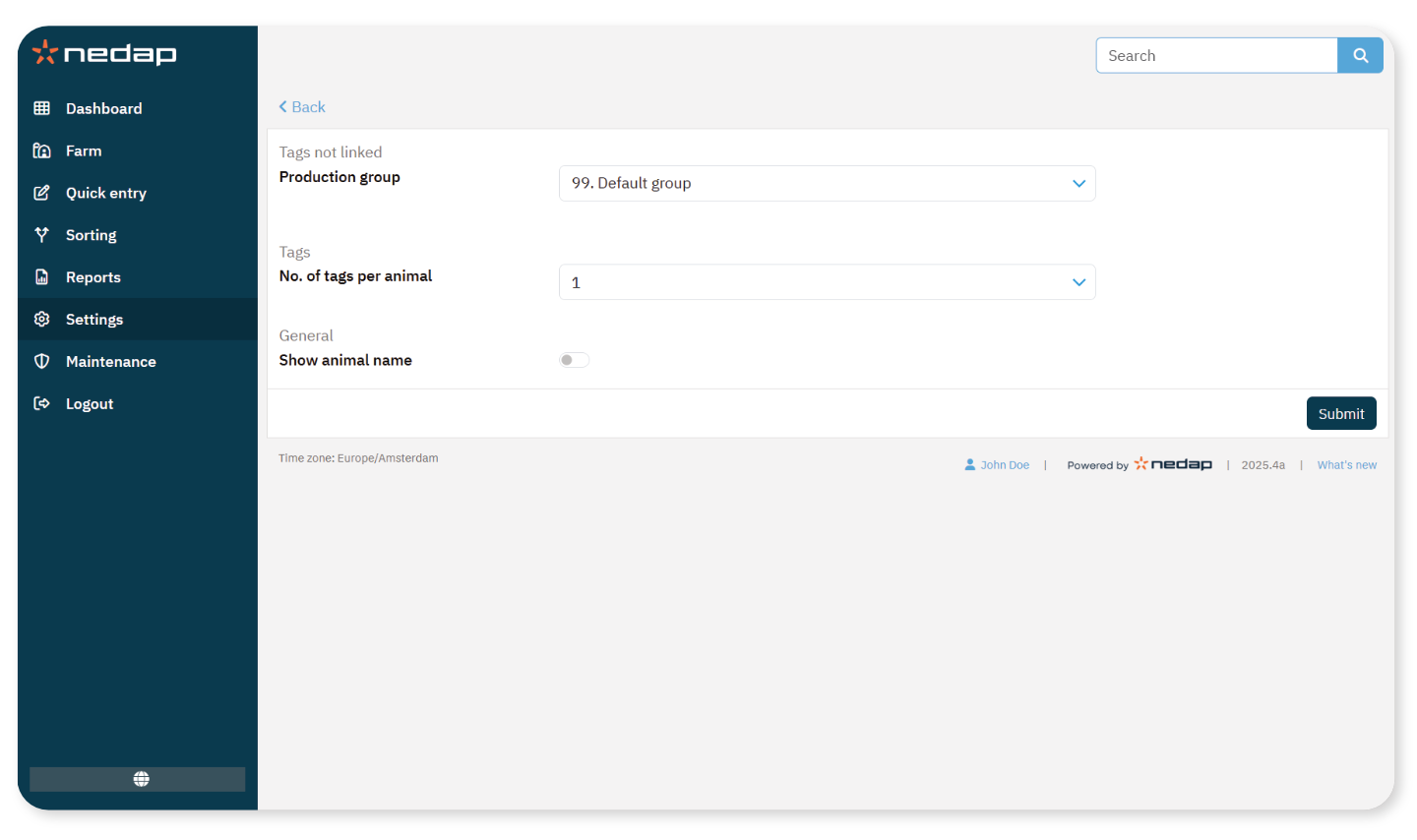 Para mais informações sobre o número de etiquetas por animal, consulte Configurar o número de etiquetas por animal.