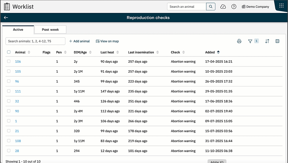 • The animal details page: Select an animal number, then select View on map in the upper-right corner.
